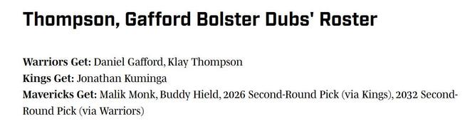 獨行俠得到:蒙克+穆迪+國王26年二輪+勇士32年二輪。