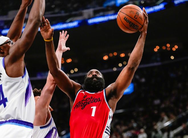 - 小卡45+7末節(jié)20分快船大勝爵士奪6連勝 哈登20+7李凱爾22+8