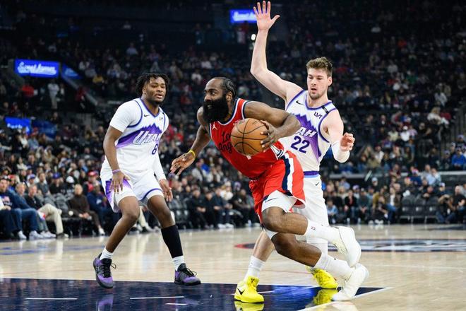 - 小卡45+7末節(jié)20分快船大勝爵士奪6連勝 哈登20+7李凱爾22+8
