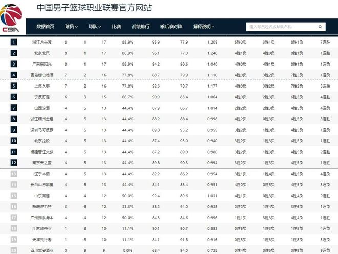 - CBA最新排名:廣廈7連勝重返榜首 山西主場(chǎng)爆冷4連敗 四川0勝9負(fù)