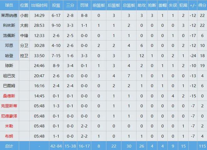 盡管很尷尬,可不能把輸球的鍋全部甩到祖巴茨身上,人家本場打的替補,快船全隊數(shù)據(jù)如下: