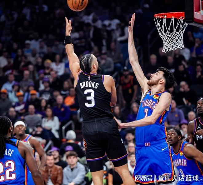 第三節(jié)比賽杰威罰球得分,可之后布克頻頻突到內(nèi)線得分不說(shuō),吉萊斯皮也命中三分,馬威內(nèi)線得分后太陽(yáng)追平比分,亞歷山大命中三分后布克造成殺傷罰球得分,接下來(lái)亞歷山大、霍姆格倫能夠得分,但是馬威也在內(nèi)線得分,布克繼續(xù)造成殺傷罰球得分,加上狄龍的發(fā)揮太陽(yáng)咬住比分,可之后太陽(yáng)進(jìn)攻停滯,米切爾、亞歷山大趁機(jī)打出一波8-2,末尾階段太陽(yáng)打出一波12-3,三節(jié)比賽結(jié)束太陽(yáng)反超1分。第四節(jié)比賽維金斯、霍姆格倫幫助雷霆完成反超,關(guān)鍵時(shí)刻古德溫命中三分,雷霆一波6-0后狄龍命中三分,杰威內(nèi)線得分后古德溫又命中三分,接下來(lái)兩隊(duì)打得激烈,古德溫、狄龍幫助太陽(yáng)緊追比分,末尾階段布克、狄龍和古德溫更是幫助太陽(yáng)反超比分,雖然后面霍姆格倫、杰威追平比分,可后續(xù)布克命中三分,最終雷霆大爆冷輸給太陽(yáng)。