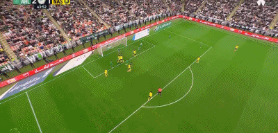 連丟2球后利雅得勝利才如夢初醒,第32分鐘,阿姆里禁區(qū)外圍轟出一腳大力遠(yuǎn)射,桑比意外撲球脫手不慎將球漏進球門,1:2!第42分鐘,阿姆里右路斜線傳中,C羅門前頭球擦著橫梁出界;第44分鐘,布羅佐維奇角球旋入禁區(qū),阿姆里頭球破門同樣上演梅開二度,2:2!半場結(jié)束前,還是加萊諾左路的突破橫傳,托尼打門擊中立柱差點上演帽子戲法。