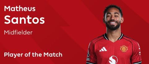 英超第20輪,曼聯(lián)客場1-1戰(zhàn)平利茲聯(lián),此役打入一球的曼聯(lián)前鋒馬特烏斯-庫尼亞當(dāng)選全場最佳球員。