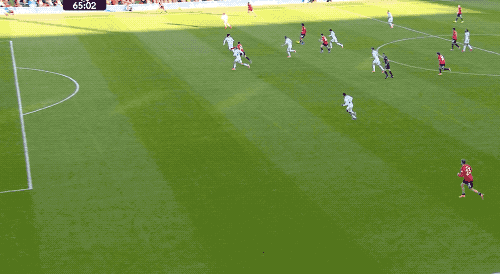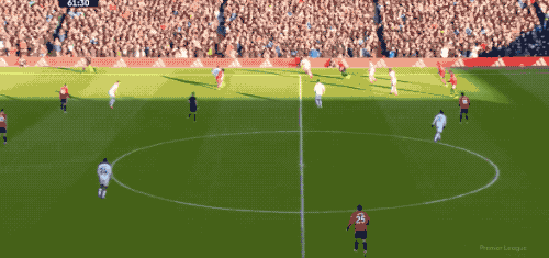 第62分鐘,曼聯(lián)19歲的中衛(wèi)海文突然短路,回追的過程中主動降速,看到阿隆森快速超車時已經(jīng)來不及,阿隆森的射門令拉門斯無能為。