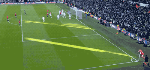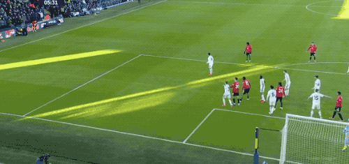 第40分鐘,還是盧克肖的角球,卡塞米羅頭球擺渡,約羅近在咫尺的頭球攻門,居然被佩里撲了出來。